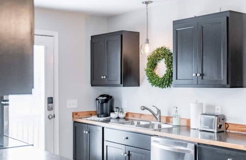 KITCHEN: fridge, sink, oven/stove, pots/pans, dishwasher, dish ware, Keurig & organic coffee