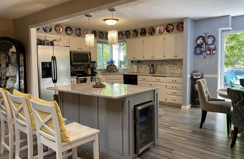 The Treehouse Retreat has 3 Bedrooms , 1 Bathroom, and max occupancy of 8 people. The minimum rental for this property is 1 nights, but this can change depending on the season you plan on staying. Previous guests have given good rated it, and VRBO labeled it a top-rated House because of the excellent services rendered by the owner or manager of this House, and has consistently provided great experiences for their guests. Most families or guests that use it recommend it to their friends and some of them are repeat guests. House has a friendly neighborhood, and the Blue Springs has interesting places to visit. If you want to learn more about the House in Blue Springs, such as places to visit and things to do nearby, you can check below to learn more.