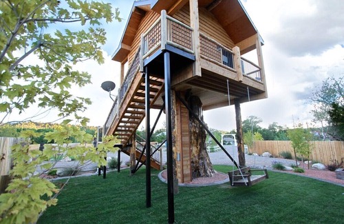 Our hundred year old cottonwood tree died last year and we just couldn't cut it down. So, what did we do? We preserved the trunk and built us a treehouse to share with everyone. We are also one of the only approved "Airbnb Experience" hosts in all of Utah. Our slot canyon tours are unforgettable!