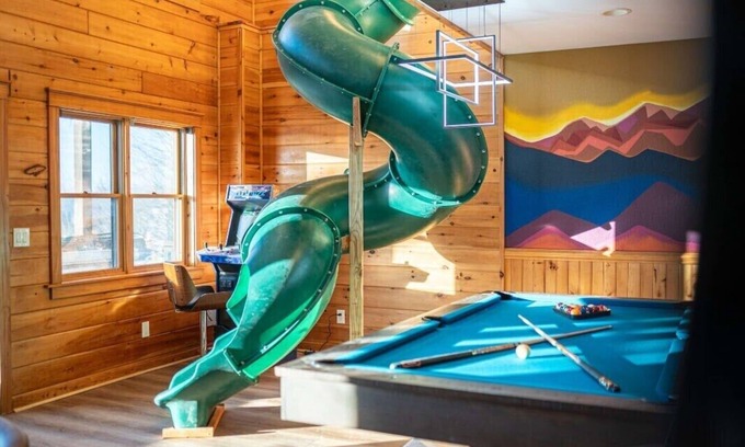 Endless Entertainment: Enjoy access to multiple entertainment options including pool tables, air hockey, Golden Tee, arcade games, and even a unique indoor slide, ensuring that your guests are entertained throughout their stay.