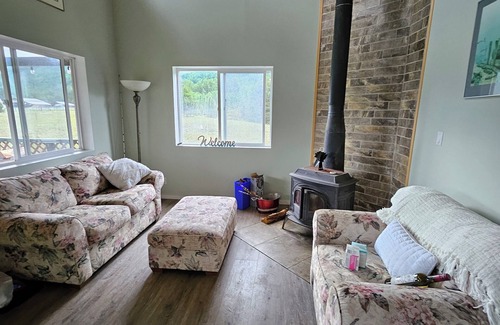 Our focus is on having our guests relax around the outdoor fire pit,or indoor wood stove. Free to enjoy the mountain views from the deck. There is a large front yard for children and pets to enjoy..tents are permitted for the extras...please enquire pre visit.