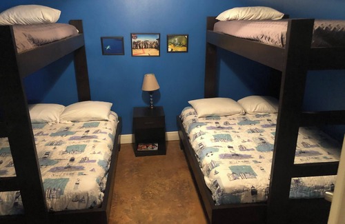 All bedrooms have 2 full size bottom bunks with a twin top bunk in each room.