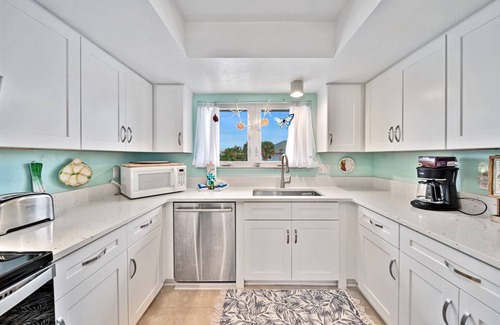 "The Turtle Nest" is a 2 bedroom, 2 bathroom pool home nestled in the desirable East Rocks neighborhood off West Gulf Drive. This charming house boasts lake views and a short walk to the nearby beach access. Enjoy the comforts of home with this newly updated kitchen stocked with all the cooking & baking essentials needed for your island vacation. The spacious main living and dining room open up to a large wrap around deck overlooking the pool area and the lake views beyond, great for enjoying your morning coffee or evenings alfresco. The home offers a convenient split floor plan with 2 master suites with King beds in each bedroom, private bathrooms, and access to the attached deck/lanai. The large saltwater pool is enclose by the large screen lanai and is the perfect island escape during those warm Florida afternoons.