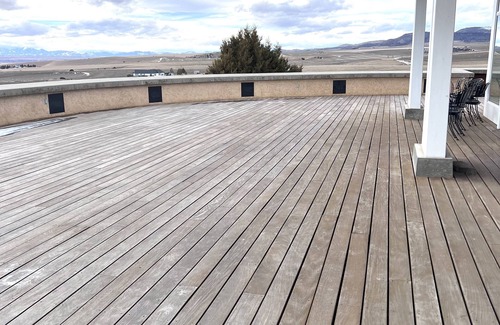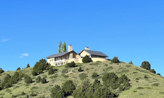 Gather in Belgrade to take in stunning 360 degree mountain views at this award winning 3 bedroom home. The home is set up with AC, Wifi, a big screen TV, laundry, fire pit, wheel chair accessible ramp, 2,000 square foot terrace that includes seating for14, gourmet kitchen, dining room that seats 10, surround sound, gorgeous hard woods and floor to ceiling windows for wildlife viewing. Located on a private 220 working ranch. Take in the 6 stunning mountain ranges while enjoying the gorgeous surroundings of this award winning home.