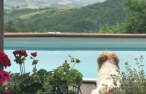 Private pool with stunning views of Italian hilltop towns of Penne and Loreto and the mountains of the National Park.