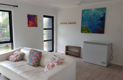 This bach has it all - 3 bdrm, 2 bathrooms, spacious kitchen/lounge/dining, large deck for summer BBQs, plenty of room for the boat and just a 30 second stroll to the beach.