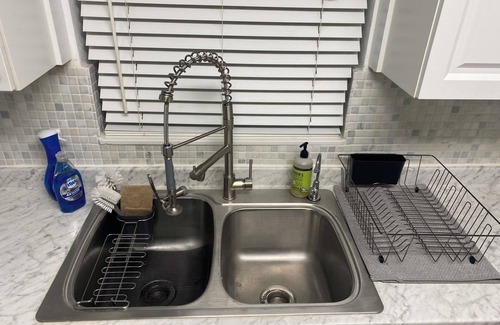 Our fully equipped kitchen has everything you need to whip up delicious meals, featuring a stainless French-door refrigerator, electric stove/oven, and microwave. Coffee lovers will appreciate the standard automatic drip coffee maker and a Keurig, complete with plenty of cups and filters.