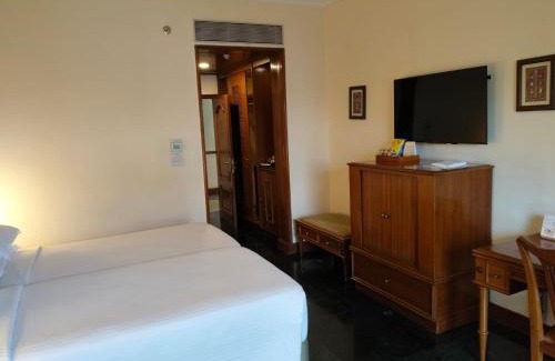 Sitting on the banks of Sabarmati River, Hotel The Ummed offers an outdoor pool and a fitness center. Just 1640 feet from Ahmedabad Airport, it provides 24-hour room service and a 24-hour coffee shop. Free WiFi is available. The spacious air-conditioned rooms are equipped with a satellite TV, tea/coffee making facilities and a personal safe. Suites come with a flat-screen TV and DVD player. All private bathrooms have shower facilities. Hotel The Ummed is 5.6 mi from Ahmedabad Junction Railway Station. It is 11 mi from Gandhinagar city center. Airport shuttles can be arranged at an extra charge. Full professional services are offered at the hotel's business center. The hotel also provides laundry services and a doctor on-call. Luggage storage and currency exchange services are also available. The 24-hour Coffee Shop - Jacaranda serves international and local dishes in both buffet and à la carte styles. Live classical music performances and Indian cuisine can be enjoyed at Narmada restaurant. Complimentary two way Airport transfer back to the base category room.