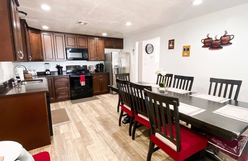 Enjoy this home that is centrally located and right next to all the shops, restaurants, and so much more. This home was built to host large groups. Sit back and enjoy in our fully stocked 2 kitchens, 5 bedroom, 4 Full bathrooms, 2 living rooms, 2 sets Washer/Dryers, Hot Tub, Fire Pit, grassy backyard & Air hockey. Lots of parking out front with room for 2 trucks with attached trailers (Boats, Seadoo,etc) and then some.