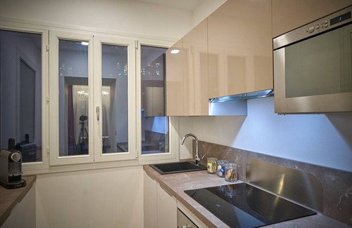 Scenic and luxurious apartment with private garden in a charming private courtyard, a few meters from the Frari Church, the Scuola Grande di San Rocco, the Accademia Bridge. Flooded by the light that enters from ten French windows, windows and glass doors, enriched by elegant curtains, this Venetian "cottage" is a true oasis of peace in the historic center of Venice. Living room with double sofa bed and dining table, patio door to the garden, two windows to the private courtyard; independent kitchen with windows overlooking the garden; spacious bathroom with window to the garden; corridor with cabinets; double bedroom with windows overlooking the garden; private garden with tables and deckchairs. The apartment is in the building where the property resides which, together with the service staff, is available for any requests. Condominium courtyard, house, garden