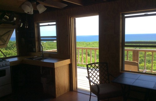 This charming lower unit features a well-appointed studio flat with modern amenities that ensure comfort and convenience. The elevated design keeps you above the biting bugs typically found at ground level, allowing for peaceful outdoor moments. Enjoy refreshing trade winds flowing through retro-style hurricane shutters, or cool off with ceiling fans in every room. With separate entrances and self-sufficient living spaces, this unit is ideal for intimate gatherings or larger wedding parties if you choose to book the upper unit, accommodating everyone seamlessly.
