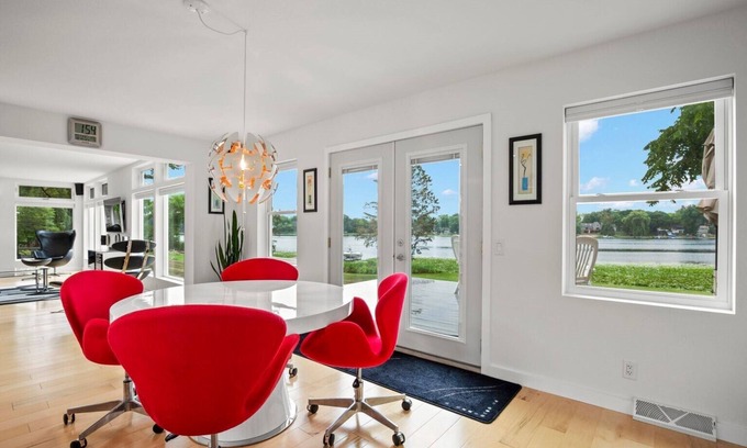 - Modern lake house with a double lot. The views are amazing inside and out!n