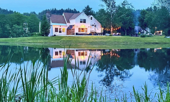 Welcome to The Villa @ Farm Road Estate - a stunning Industrial farmhouse. Our premier luxury home is situated on 32 picturesque acres overlooking our fishing pond,. This 2,600 sf home is ready for your enjoyment. It features an open concept floor plan with 4 bedrooms, 3 full bathrooms, 2 fireplaces, Hot Tub, and a recreation room. This exceptional property has 2 ponds (1 swimming / 1 fishing), swimming pool, private hiking trails, 3 mi to Mount Snow Ski and 1/2 mi to golf, close to VAST and hiking trails.