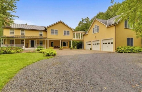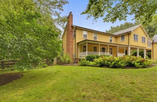“Skybridge” is a huge and private home on a seven-acre property ideally situated just a few minutes outside Purcellville in rural Loudoun County. Less than an hour outside D.C it provides easy access to local wineries, breweries, child-friendly farms, the Appalachian Trail, historic Purcellville, and Middleburg, VA. It comes stocked with all you need, and guests have access to a pool (in season), hot tub, fire pit, built-in charcoal grills, and more.