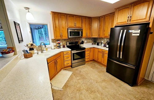 Forget your worries in this spacious and serene home. This single level home sleeps up to 8 and is updated with all the modern amenities you will need for a comfortable stay. Enjoy an early morning breakfast outside on the patio or a relaxing evening by the firepit.