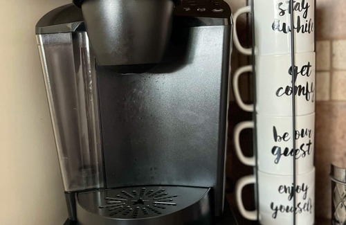 The kitchen is fully equipped with everything you will need to prepare meals during your stay, including a griddle for morning pancakes and even a mini air fryer for a quick snack!