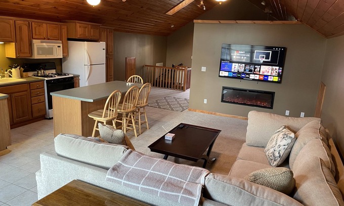 The Village Loft has everything you will need for a nice stay in Gowanda. This is a private, one bedroom upper apartment offering a well-equipped kitchen, large smart TV, high-speed internet, electric fireplace, and covered off-street parking. The rear deck and large yard are also exclusively available to Loft guests.
