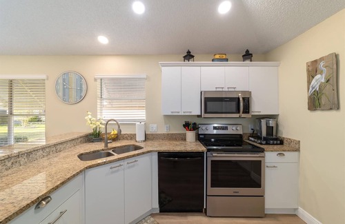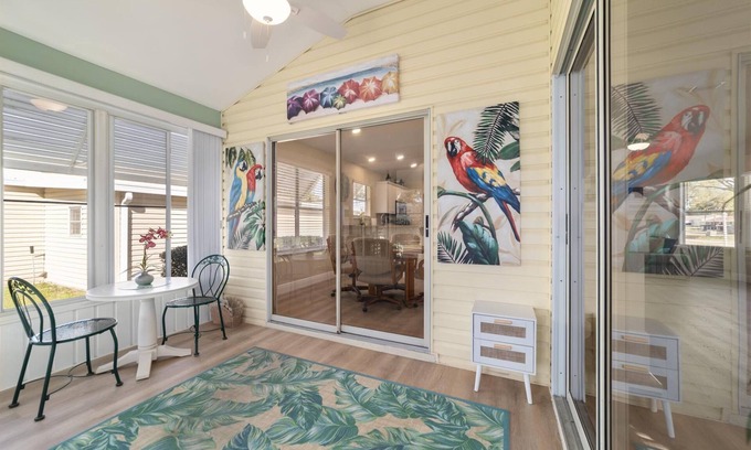 Welcome to The Villagers Retreat! This Designer home is located between Spanish Spring & Sumter Landing. Access to all amenities w/ provided guest passes. Near 2 Executive Golf Courses, pools, pickleball, tennis, and much more! This peaceful quiet neighborhood is close to great shopping, restaurants and live entertainment every night! Enjoy this spacious layout offering two lanais, and a huge backyard. Fully equipped kitchen. Free Wifi, home includes a washer & dryer.