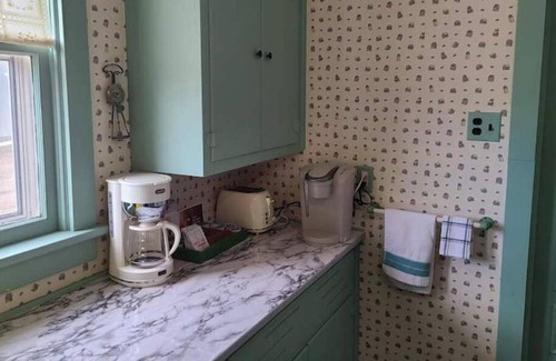 This cottage has two bedrooms plus a small non-standard bedroom, full kitchen, full bath, dining room, living room, full front porch, and unfinished basement (storm shelter). There is room for 6 to sleep, plus a toddler (in the toddler bed) and a baby (in the pack & play). A small roll-away is also available on request (smaller than a twin bed). The cottage has a new furnace, air conditioner, and hot water heater, and a cozy electric fireplace for your comfort. Smart TV with ESPN+ and Disney, as well as an antenna for local stations. Can provide extension cord and outlet for overnight EV charging. Washer/dryer on-site for long-term guests. Will Enjoy playing board games and reading books during your stay. Toys, puzzles, toy dishes, and kid's books (including some in Spanish) are also available for our young guests. Guests have use of the front and back yard to toss a football around, or play frisbee. Baseball and softball fields are just blocks away, as well as playground equipment and the city swimming pool. With camping available in the park, this is a great family reunion location!