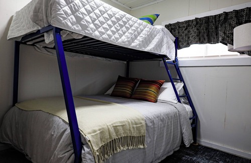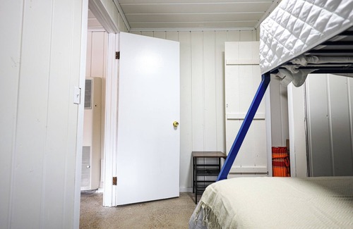 As a remodeled Motel, the space is very cozy. Queen beds were not common in the 50's but we squeezed one into the main bedroom. We've got a bunk bed that has a Full sized mattress on the bottom and a twin on top in room two. Our ARTICLE brand couch bed folds out for that extra guest or family member. The Vintage has a full kitchen for you to cook in with meat's from Walt's Meats next door or warm up something quick before you head out to the beach!