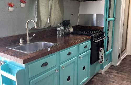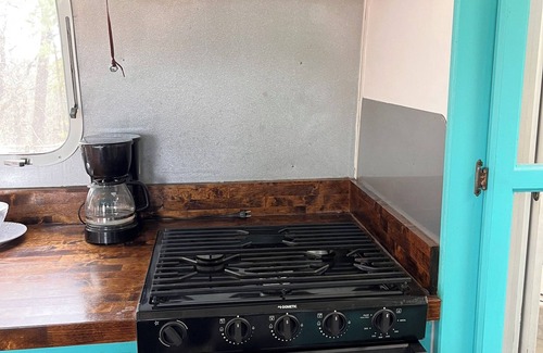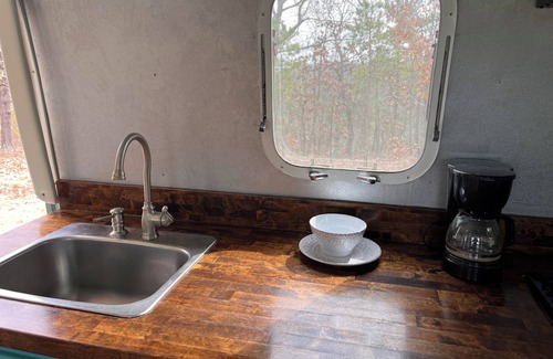 There will be an initial amount of paper products at the camper to get you started (TP and paper towels), but guests should plan to brings their own if staying beyond 2 nights. We also offer a charcoal grill and bbq utensils (guests can bring their own fire wood, charcoal and fluid or can purchase through our on-site store). There is a private fire pit outside of the RV (bring your own wood or purchase a generous bundle from our store). The coffee maker is a 5 cup drip. There is NO TV Or WiFi, but cell service is typically good enough for a hot spot.