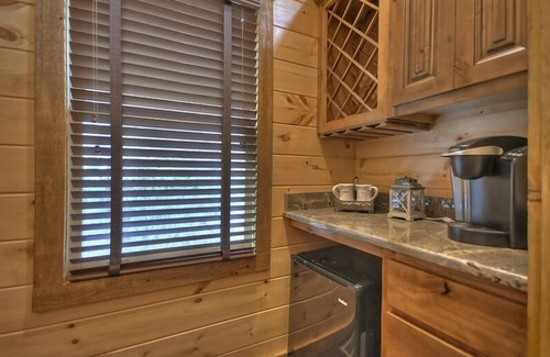 Located on the entry level, you'll find a King bedroom with a 40" Flat Panel Television and an attached bathroom with a double vanity and a stand-in shower, and a large walk-in closet. Upstairs offers a loft area attached to a catwalk that leads to a private upper-level porch. Off the loft is access to the master King Bedroom with a 40" Flat Panel Television, attached bathroom that offers a walk-in shower, towel warmer, walk-in closet, a kitchenette with a Keurig, a gas fireplace and private screened in porch. The screened deck area off of the master king bedroom offers the option to remove the screen via remote control if desired.