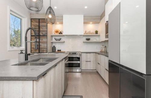 The Wabi Sabi 4-bedrooms Designer Home is located in Kemptville, just 28 miles from EY Centre and 30 miles from Canadian Tire Centre. This vacation home provides free private parking, private check-in and check-out, and free Wifi. The air-conditioned vacation home consists of 4 bedrooms, a living room, a fully equipped kitchen with a dishwasher and a coffee machine, and 3 bathrooms with a bath and a hair dryer. A flat-screen TV with streaming services and a game console are provided. The vacation home offers bed linen, towels, and laundry service. Ottawa Macdonald-Cartier International Airport is 25 miles away.