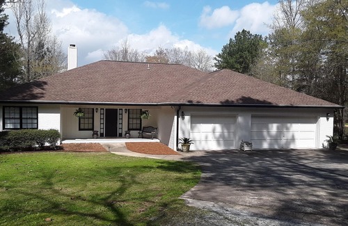 The lake home sits on a flat 2.73 acre waterfront property. This listing offers (2) two bedrooms with 1-1/2 baths. Guests have the entire house during their stay. A spacious open floor plan Great Room area overlooks the yard and lake. The property is on a large quiet slew making the water calm and peaceful. The property boasts quiet surroundings and privacy. The pier accommodates lounging, sunbathing, fishing, , swimming, and relaxation. The back porch is a restful peaceful haven for dining and socializing or just reading a good book and relaxing on the cozy porch swing. The lake home is centrally located to Publix Grocery, The Pell City Civic Center, Public Boat Launch, Splash Pad (water park), Tennis Courts, and nature walking trails. Pell City's new Movie Theater with reclining seats, state-of-the-art Bowling and Gaming Arcade is the rave!! Honda Manufacturing Plant is 10 minutes away. Just 25 minutes away is Talladega Motor Speedway. Barber's Motorsports Museum, Bass Pro Shop, and Outlet stores are all just 20- 25 minutes away.