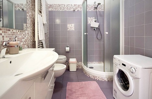 For your convenience, there's a stovetop and a microwave. Bathroom amenities include a hair dryer, a bidet, and towels. And there's access to laundry facilities, so you can even pack a bit lighter. Other amenities at this 1-bedroom, 1-bathroom rental include bed sheets, an ironing board, and air conditioning.