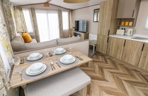 Amenities: Gas central heating. Electric oven and gas hob, microwave, fridge/freezer. Smart TV, TV, WiFi. Fuel and power inc. in rent. Bed linen and towels inc. in rent. Travel cot and highchair available on request. Off-road parking for 2 cars. Private decking with hot tub. Note: This property accepts up to 2 well-behaved dogs at a charge of £35 for the first dog. Sorry, no smoking. Shop 2.5 miles, pub and beach 1.9 miles. Note: There are steps up to the static. Note: Check-in from 4pm and check-out by 10am. Please Note: Infants are included within the maximum occupancy number for this property.