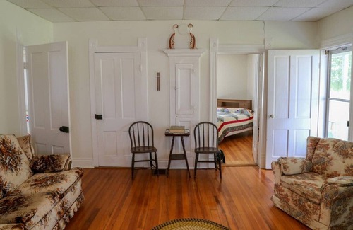 Enjoy a 125+ year old country home with large yard and beautiful shade trees located on a 100-acre farm in the rolling hills of SE Missouri. The house is very clean and spacious with 4 large bedrooms (Room for 10-12 people), 7 comfortable beds, beautiful hardwood floors and a large living room. We have hand-made quilts and antique furniture throughout. The kitchen is fully furnished. Relax on our 40’ front porch with swing, by the fire pit or in a hammock. A perfect place for you to recharge from stress & busy schedules!