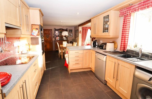 The West Wing is a self-contained annex located within the village of Bodfari, Denbigh. It homes two bedrooms, one ground floor double and a twin bedroom with en-suite, posing a walk-in shower, basin and WC. Downstairs shower room with walk-in shower, basin and WC. Inside you will also find a charming sitting room with a woodburning fire, a well-equipped kitchen/dining room. Finally, there is a conservatory with seating arrangements, overlooking the grounds. Guests will have a private parking area, and a front garden and an enclosed back garden. The West Wing is a delightful property, situated within a picturesque location. Note: The back garden is shared with the owners and is not fenced off, therefore, guests are requested not to go beyond the West Wing area. This property only accepts bookings starting on a Monday and a Friday. Note: This property is not suitable for children under the age of 5