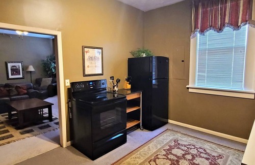 Located on the bricks in historic downtown Fairbury! The Westchester is a full suite with kitchen, onsite free laundry, free Wi-Fi, full bath, spacious living room, and comfy queen size bed. Conveniently located next to several restaurants, movie theatre, boutiques, specialty shops, and coffee shop. Fairbury is surrounded by incredible parks, bike and walking trails, and unique outdoor and historical adventures!