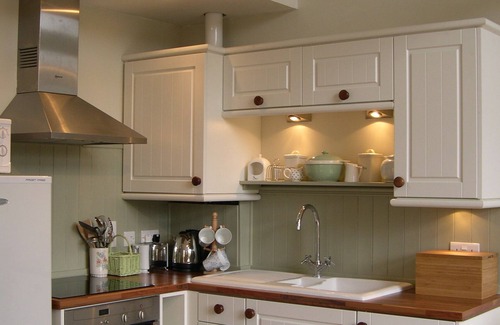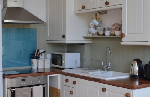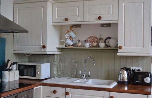 With tasteful, comfortable furnishings and plenty of character, The White Barn provides ground floor accommodation: open plan sitting/ dining/ kitchen area, bedroom with ensuite bathroom, French doors to patio garden. Newly refurbished, it is in excellent condition with new, up-to-date equipment and utensils, including dishwasher and washer dryer, smart TV and DVD player and wi-fi internet access. The bedroom has a high quality, comfortable new bed and mattress, and the ensuite bathroom is completely tiled with new modern fittings, including bath, thermostatic power shower and heated towel rail. A travel cot or ready bed can be provided for small children or babies.