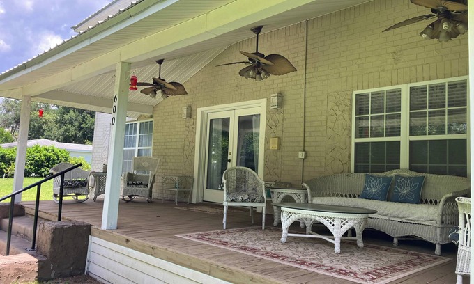 Historic Florida charm meets modern updated conveniences. This spacious 2 story charmer has plenty of space for a family event or Florida getaway. The outdoor space is perfect for family parties, vow renewals, and summer BBQs. Located on a quiet brick street, you will feel safe on an evening stroll to the St John’s River which is just 2 blocks away. You will enjoy making breakfast in the updated kitchen that overlooks the backyard. The Whitehouse also conveniently includes a bedroom downstairs with a full bathroom for guests who are impaired or unable to climb stairs. Self Check-In!