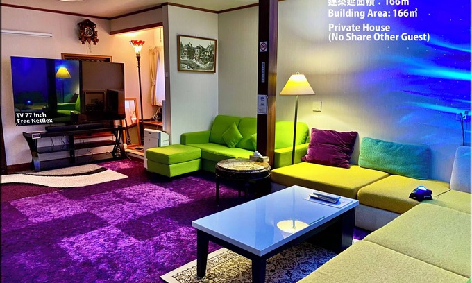 - The whole building can be rented (only for guests) Long term welcome Outlet 7 min walk 11 people 1 bedding per person, no hassle Max 12 people, clean, spacious with Japanese style rooms 4 free parking spaces 4 bedrooms BBQ reservations possible