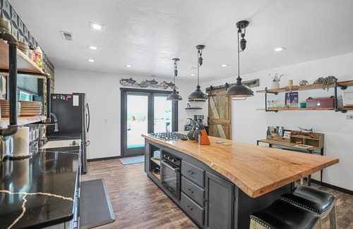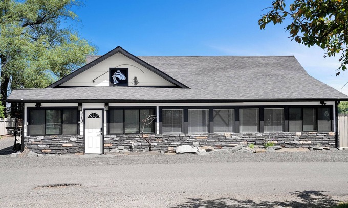 Modern Meets Western at "The Wild Trout" Enjoy tying fly's, entertaining friends, and spoiling yourselves! Stumble out your front door and grab coffee at the Black Butte Coffee or A whiskey at Willies