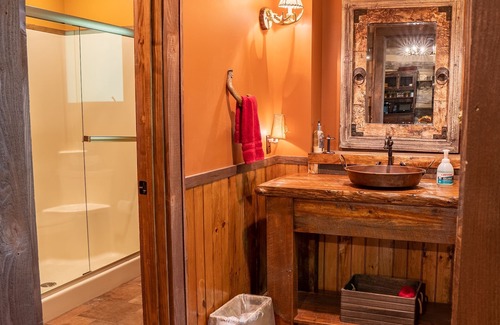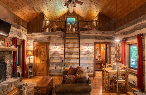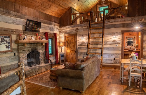 Our Wilderness Lodge is an antique log cabin with an elegant rustic and romantic feel that is tastefully decorated. It is known for its designer touches and comfort, making for the perfect getaway for you and your family!