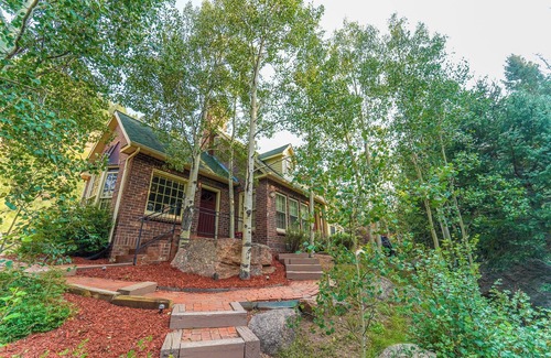 - Charming, cozy cabin in the heart of Pikes Peak country! Hot tub, gas fireplace!