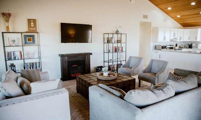 Best-rates for the The "Wine Down" Lodge starts from $330 per night with includes TV, Security/Safety, Wellness Facilities, Entertainment, Hot Tub, Pet Friendly, Balcony/Terrace, Barbecue/Outdoor Cooking, Internet, Kitchen, Laundry, Air Conditioner, Bedding/Linens, Fireplace/Heating, Child Friendly with all other amenities. Perfect for Weddings is committed to ensuring every guest experiences a comfortable and extraordinary stay, whether planning a romantic getaway, a honeymoon, a pet-friendly stay, or celebrating with the entire wedding party.