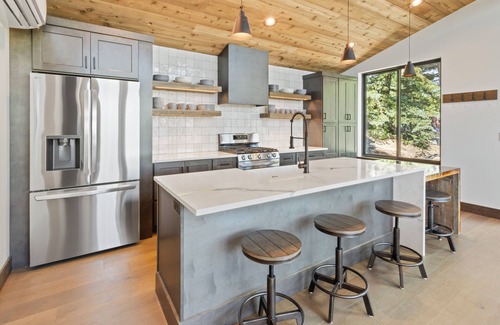 Welcome to The Wolf Den, our brand new, modern cabin and your next perfect getaway perched above the serene Henry's Lake. This immaculate cabin boasts 2 spacious bedrooms and 2 luxurious bathrooms, ensuring comfort and privacy for all guests. The heart of the home is the pristine kitchen, fully equipped with state-of-the-art appliances and elegant finishes, making meal preparation a delight.