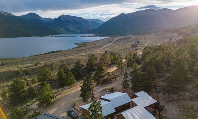 The Moose Meadow Cabin is located in Twin Lakes, a historic mining town nestled within a National Forest at the base of the tallest mountains in the Rockies. The stunning views of Mt. Elbert and Mt. Hope, coupled with clear lake views and awe-inspiring panoramic perspectives, create an ever-changing light show with beautiful sunrises, sunsets, and occasional passing storms and rainbows. The cabins offer the best views in Colorado, immediate access to the wilderness, and a peaceful escape from the city, only a two-hour drive from Denver.