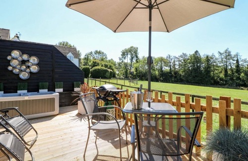 The fantastic kitchen boasts the essential appliances you'll need for a self-catered stay, plus a few luxuries like wine fridge, coffee machine and dishwasher. Dine inside or out on your own private deck, maybe having prepared something special on the BBQ, whilst taking in the views over the paddock to the hills beyond.