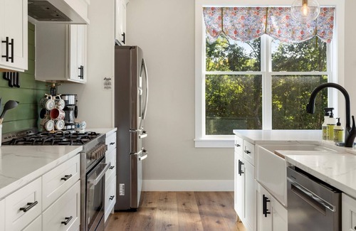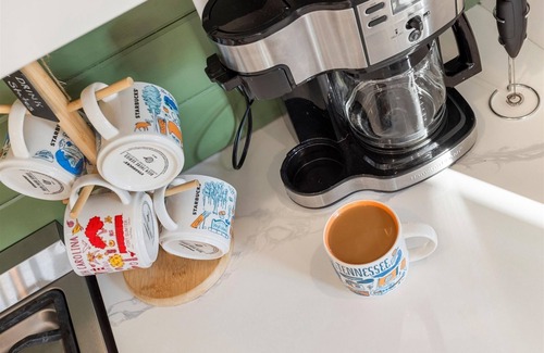 Head downstairs to the basement game room area that we call the Bear Cottage! Here you'll find an 8ft pool table, a 9ft vintage shuffleboard table, and a Simpsons arcade game with adequate bar stool seating all around to view the large 65” flat screen TV. Around the corner is the second fully stocked kitchen and an additional living space with a cozy couch, bean bag chairs and TV. What a great place to gather and unwind while on vacation! Down the hall you’ll find 2 bedrooms, a laundry room, and a full bathroom with a tub shower combo. The first bedroom has a queen bed with access to the shared bathroom along with a large walk-in closet equipped with a regular-sized baby crib. The second bedroom downstairs is a large bunk room that has 2 queen beds with two twin beds overhead!