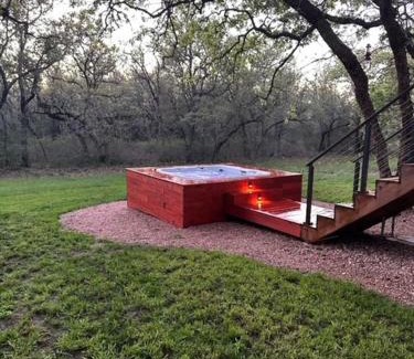 The Woodland Oasis I Luxurious Cabin Getaway I offers accommodations in Seguin, 22 miles from Comal Park and 23 miles from Comal River. This property offers access to a balcony, free private parking, and free Wifi. The villa has an outdoor fireplace and a hot tub. The air-conditioned villa consists of 1 bedroom, a living room, a fully equipped kitchen with a dishwasher and a coffee machine, and 1 bathroom with a hot tub and a hair dryer. Towels and bed linen are offered in the villa. There's also a seating area and a fireplace. Guests at the villa can enjoy hiking nearby, or make the most of the garden. Schlitterbahn Waterpark Resort is 23 miles from The Woodland Oasis I Luxurious Cabin Getaway I. San Antonio International Airport is 43 miles from the property.