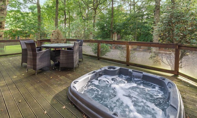 Outstanding luxury lodge with two king-size bedrooms including one en suite and main bathroom. open-plan living/dining area with built in kitchen including oven, microwave, washing machine and dishwasher. Gas central heating. Doors lead out to the decking area with tables and chairs and a relaxing outdoor hot tub. No pets.. Ladera Retreat Lodges is part of our Autograph Lodge Holidays Collection and enjoys an idyllic rural setting in the heart of the Cheshire countryside. These stunning luxury lodges nestle in 22 acres of an ancient country estate boasting a bluebell wood and providing a haven of peace and tranquility for visitors and wildlife alike.