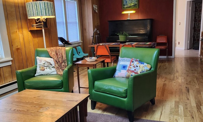 Our pride and joy is the vintage upright Steinway piano in the living room...please treat her kindly--she'd love to be gently played. There are usually a handful of stringed instruments lying around for your use as well.