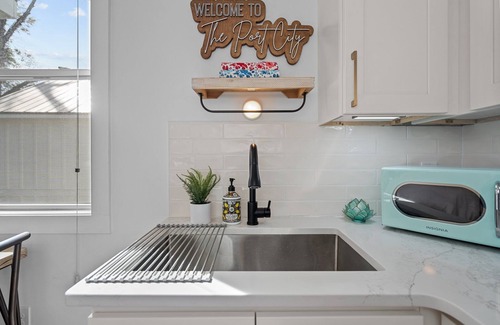 Keep it simple at this peaceful and centrally-located carriage house in the heart of historic Wilmington. Recently constructed, clean and tastefully designed in a quiet area just 4 walkable blocks from the river and all that downtown has to offer. Nestled under a giant Live Oak, this cozy studio will make you feel like you're staying in a treehouse. Included is an efficiency kitchenette, full bath, high-speed WIFI, 60" flat screen TV w/ streaming, premium bedding and packed with other essentials.