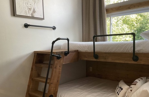 Built in 2005 and completely remodeled in 2023 by Terry’s Remodeling, and owned by Sandy and Terry Blitsch. The south side of a duplex, The Yellowstone can sleep 7 and has 2 bedrooms, 2 designer baths, and a loft. You will also enjoy a designer kitchen, and living room. As you walk outside to the large patio you will find a hot tub, grill area, seating area, a fire table and even a place to play cornhole. We are located in the center of Princeton on Main St. and you can easily walk to the north end or south end for shopping, dining, and bars.