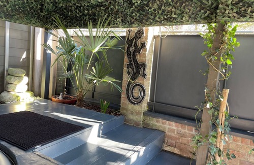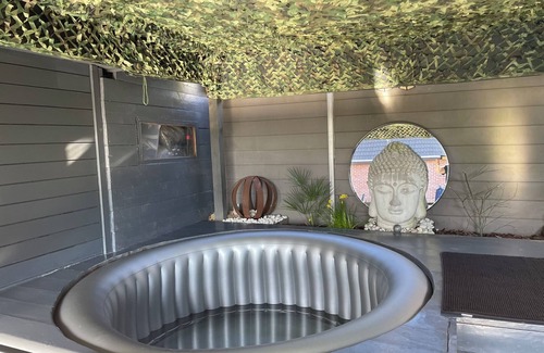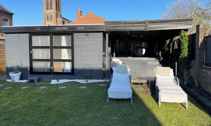The Zen cabin is located in Halluin. The Zen cabin provides accommodation, featuring Balcony/Terrace, Fireplace/Heating, Barbecue/Outdoor Cooking, among other amenities. This Ski Chalet features Balcony/Terrace, Fireplace/Heating, Barbecue/Outdoor Cooking, to make your stay a comfortable one.